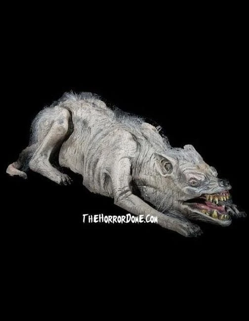 The Old Slim the Zombie Dog Halloween decoration from The Horror Dome is a hand detailed prop that looks shockingly realistic. He’s a mangy monster with decrepit pale grey skin and sporadic tufts of hair. With yellow, beady eyes, a vicious mouth filled with razor-sharp teeth, Slim is sure to induce nightmares in all the local trick or treaters who catch a glimpse of him. Over 4ft long and made from lightweight foam and durable latex, this premium decoration will add some holiday spirit to your home or place of business.