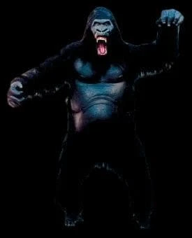 Plucked off a remote tropical island by mad scientists, this brutish primate is not adapting well to his new surroundings. Scared, homesick, and most of all, full of rage, this aggressive ape can barely be contained by steel chains. With the strength of a dozen men and a hunter’s keen instincts, he could cause great death and destruction if he were set loose. Can any cage hold this burly behemoth? You certainly hope so. This Tall Gorilla Movie Display from The Horror Dome stands more than seven feet high. He’ll tower over children at your haunted house. An imposing sight, this Gorilla is hand painted and haired by truly inspired (and slightly twisted) artists and craftspeople. The result is an unsettlingly lifelike look that will serve as the perfect centerpiece in a room of deadly animals. Featuring a ferocious mouth lined with razor sharp teeth, he’s a terrifying beast who will induce nightmares in the local trick or treaters.